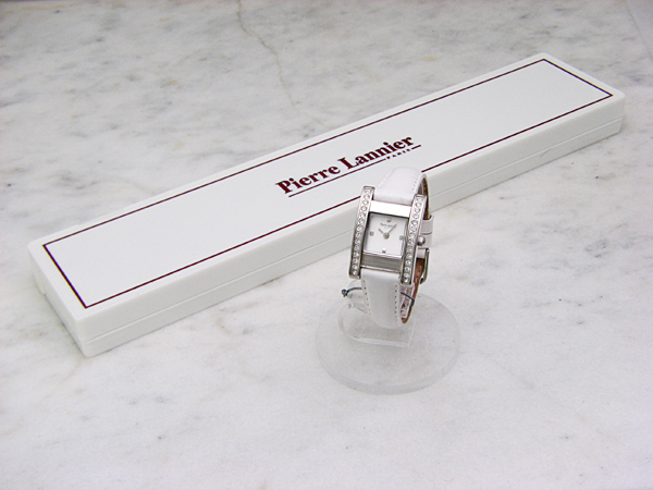 | 特徴 | 1977年設立のフランス最大手ブランドのピエール・ラニエ。ラインストーンの白の腕時計です。彫り留めのラインストーンが特徴的です。2針クオーツ。 | ||