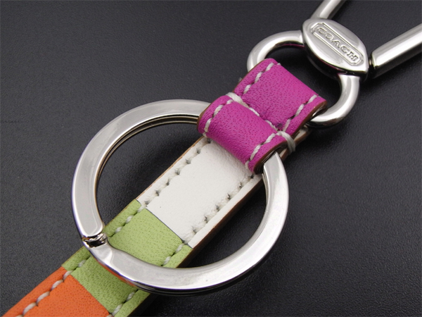 コーチのキーリングです。カラフルな色合いで、持っているだけで楽しくなります。内側はゴールドでロゴ刻印あり。 |
