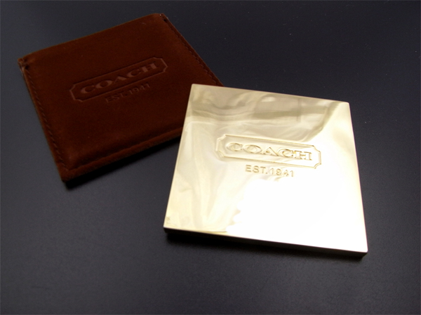 コーチのミラーです。小ぶりなので化粧ポーチの中でもじゃまになりません。お化粧直しが楽しくなりそう! |