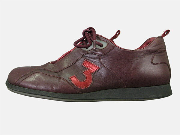 | 特徴 | ミュウミュウの、スタイリッシュで軽快なスニーカーです。上質な牛革を使用。ボルドー地に、赤で3の文字が入っています。履き心地も抜群で、とても実用的なスニーカーです。 | ||